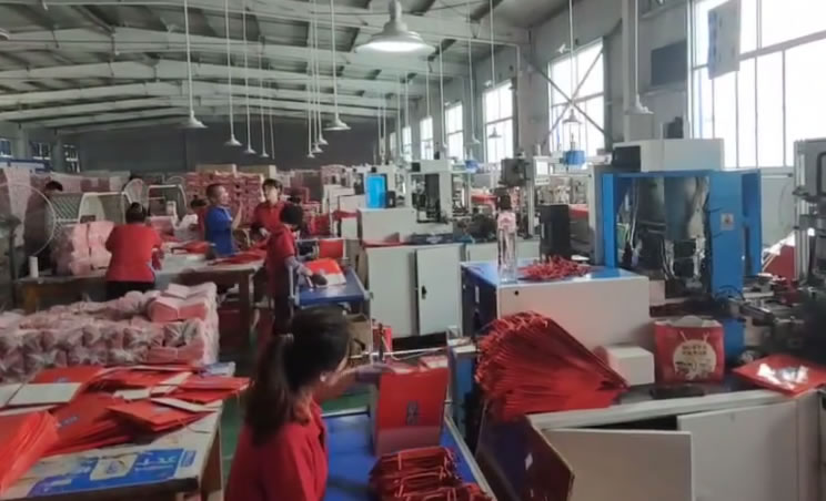 3、設備采用改變驅動方式后,可以生產(chǎn)低克重紙袋并且同時完成紙袋上穿吊牌的功能。